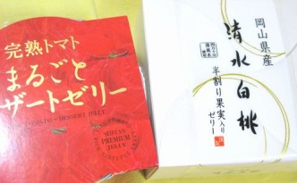 志ほやの「桃とトマトのゼリー」 自分では絶対に買えない高級ゼリーです。 本物の桃より・・・美味しい! トマトゼリーがこんなにも美味しいなんて~。 スイーツ好きにはたまりません。 桃3個に、トマト3個。 ご褒美スイーツとし …